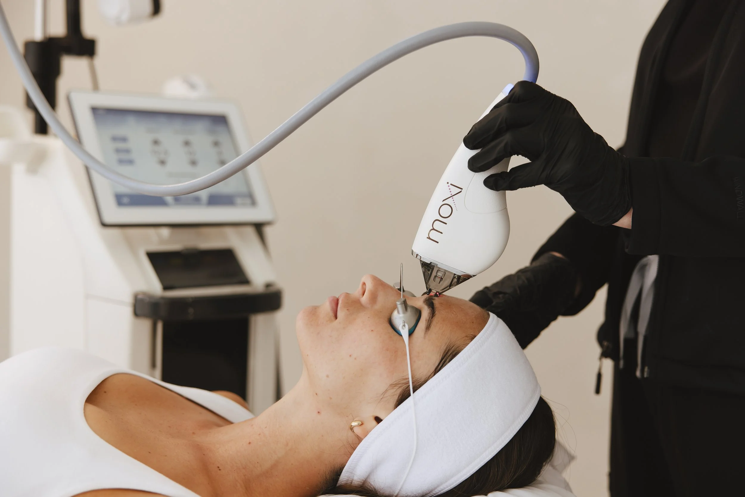 Moxi laser creates controlled micro-injuries in the skin to stimulate collagen and refresh the surface—improving overall skin quality over time.